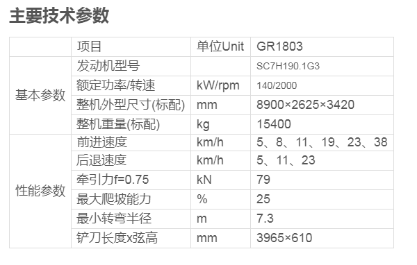 GR1803平地機(jī)主要用于公路、機(jī)場(chǎng)、農(nóng)田、等大面積的地面平整和挖溝、刮坡、推土、松土、除雪等作業(yè)。是國(guó)防工程、礦山建設(shè)、城鄉(xiāng)道路等建筑施工和水利建設(shè)、農(nóng)田改良等必須的工程機(jī)械。